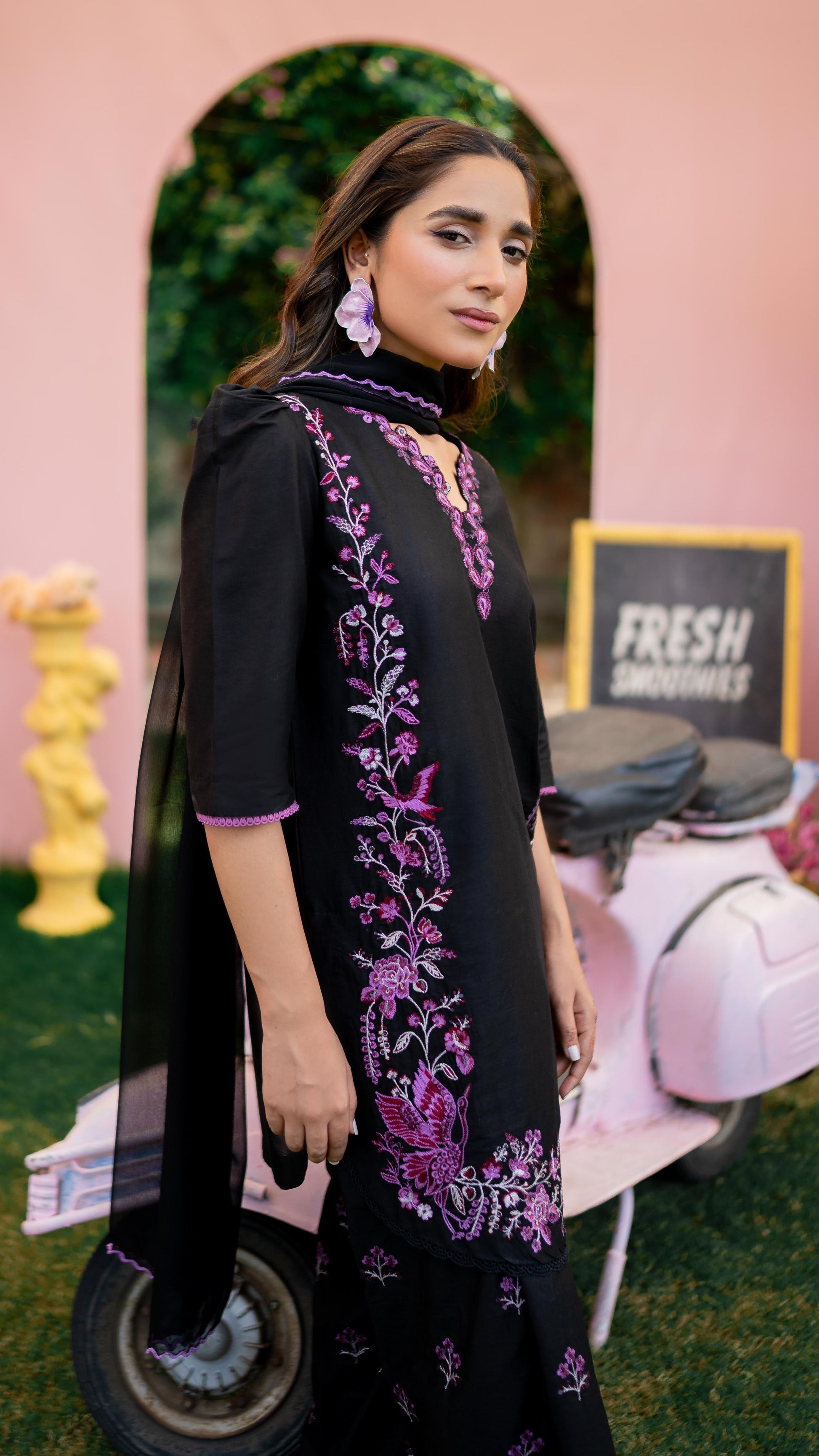 A beautifully embroidered Farshi Shalwar set crafted on soft, breathable lawn β perfect for the season. Featuring detailed threadwork and trendy cuts, it gives a premium look at a pocket-friendly price.